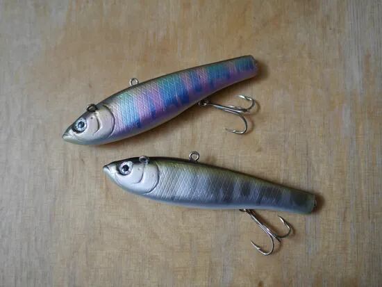 頭の斜め横に付いたアイに結んだ場合のアクションはリトリーブ(早巻き)の表層アクションでリアクションでの誘い、背中のアイに結んだ場合はシェイクといった誘いのアクションでの釣り、ひとつのルアーで2種類のアクションを楽しむ事が出来ます。