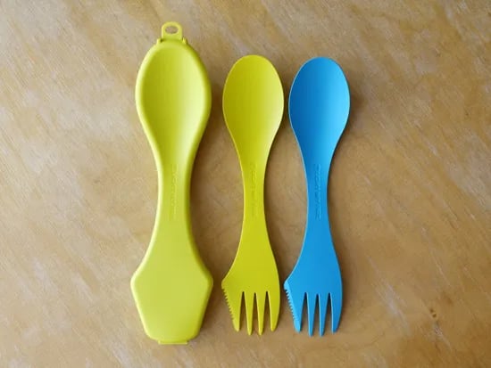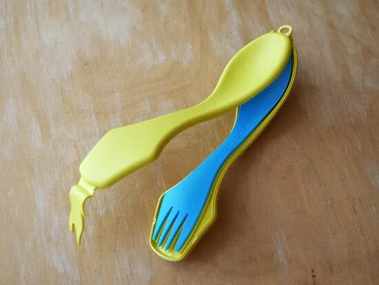 スポークはひとつでスプーン、フォーク、ナイフの三役をこなす実用的なデザインのツール。