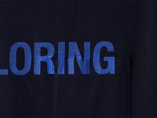 ベースボディにはあえてポケット付きTシャツを使用して意図的にポケットの上をまたいでプリントしています。