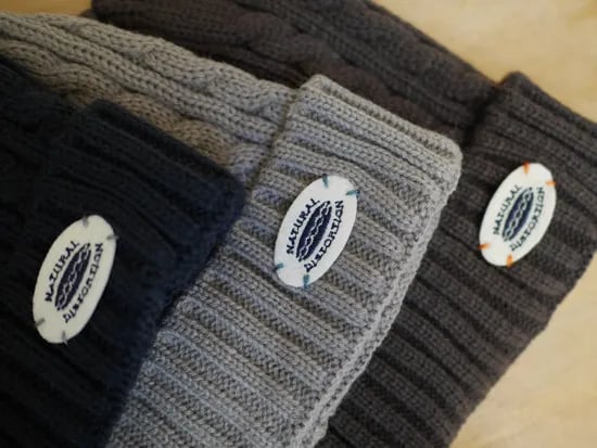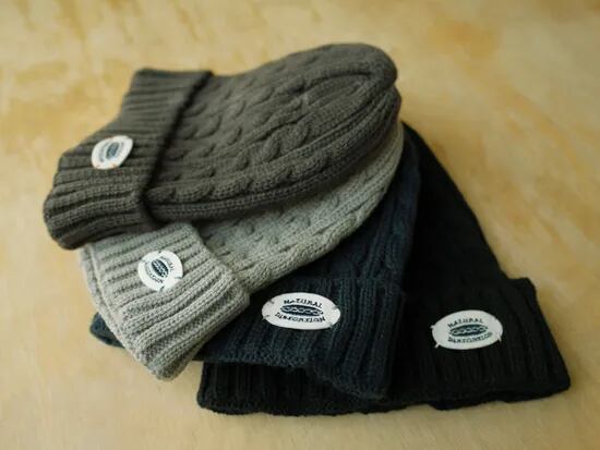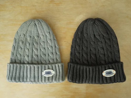 漁師の作業着が発祥と言われているフィッシャーマンニット(凹凸がはっきりした縄状のケーブル編みで織られたニット)同様、ほっこりとした可愛らしい風合いのケーブル編みニットキャップです。